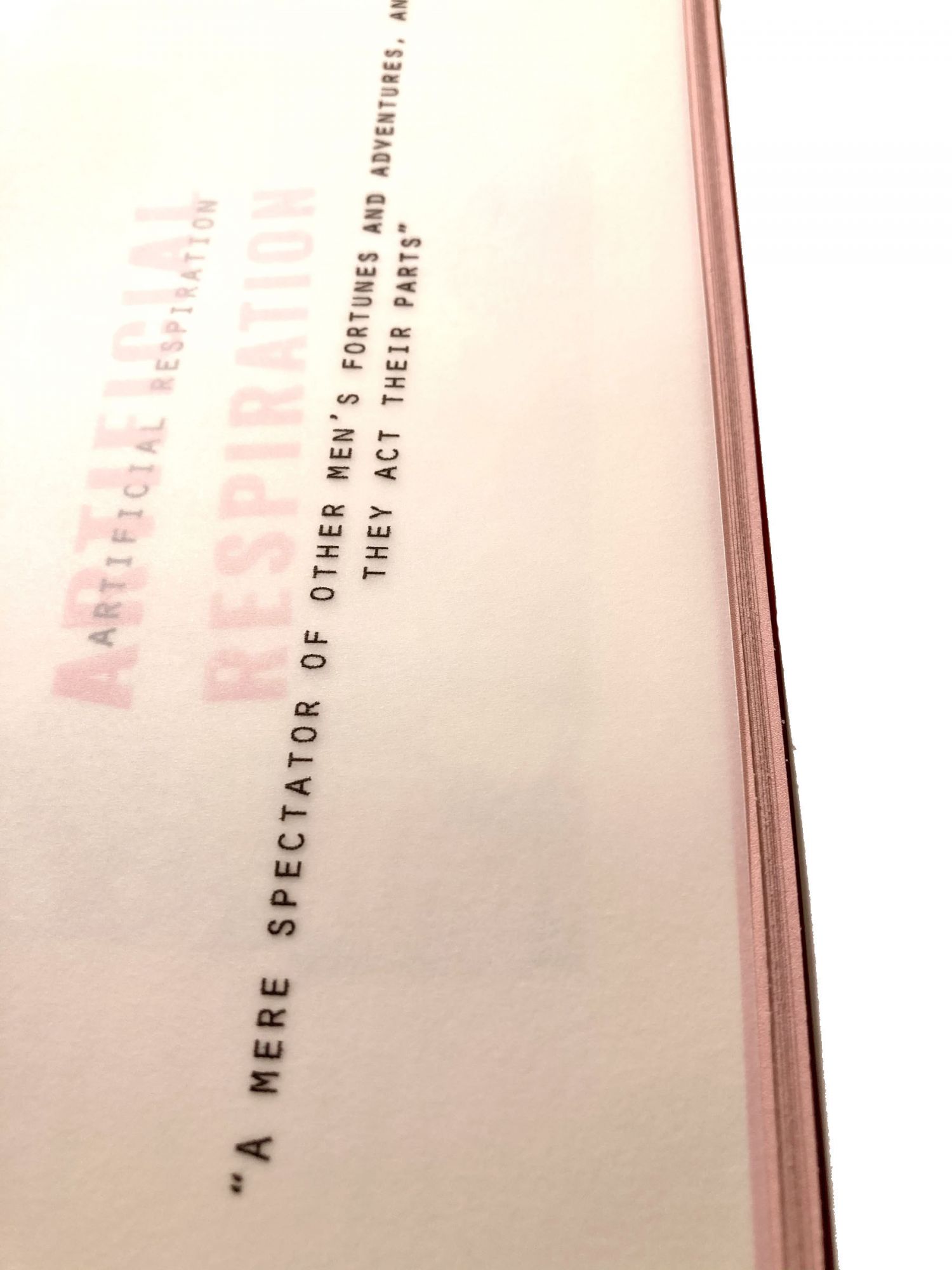 Artificial Respiration is published in December 2020 by TKS and may be purchased through Granary Books. Held in special collections including the Beinecke, the Berg Collection at The New York Public Library, and featured on the website of the Walker Art Center.